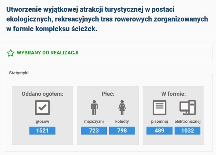 Uda艂o si臋! Nasz projekt wygra艂 w g艂osowaniu i zaj膮艂 pierwsze miejsce. 1521 g艂osów na realizacj膮 tego zadania.