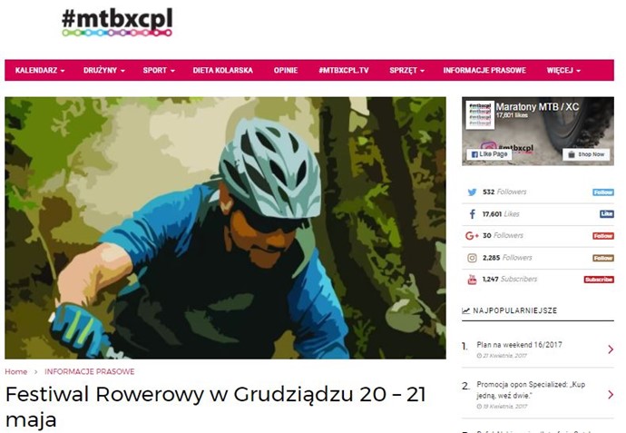 Zapraszamy do wzięcia udziału w pierwszej edycji zawodów kolarskich organizowanych w dniach 20-21 maja 2017 roku w Grudziądzu. Na uczestników czeka malownicza trasa przebiegająca przez teren miasta oraz Nadleśnictwo Jamy, m.in. wokół Jeziora Rudnickiego Wielkiego.
